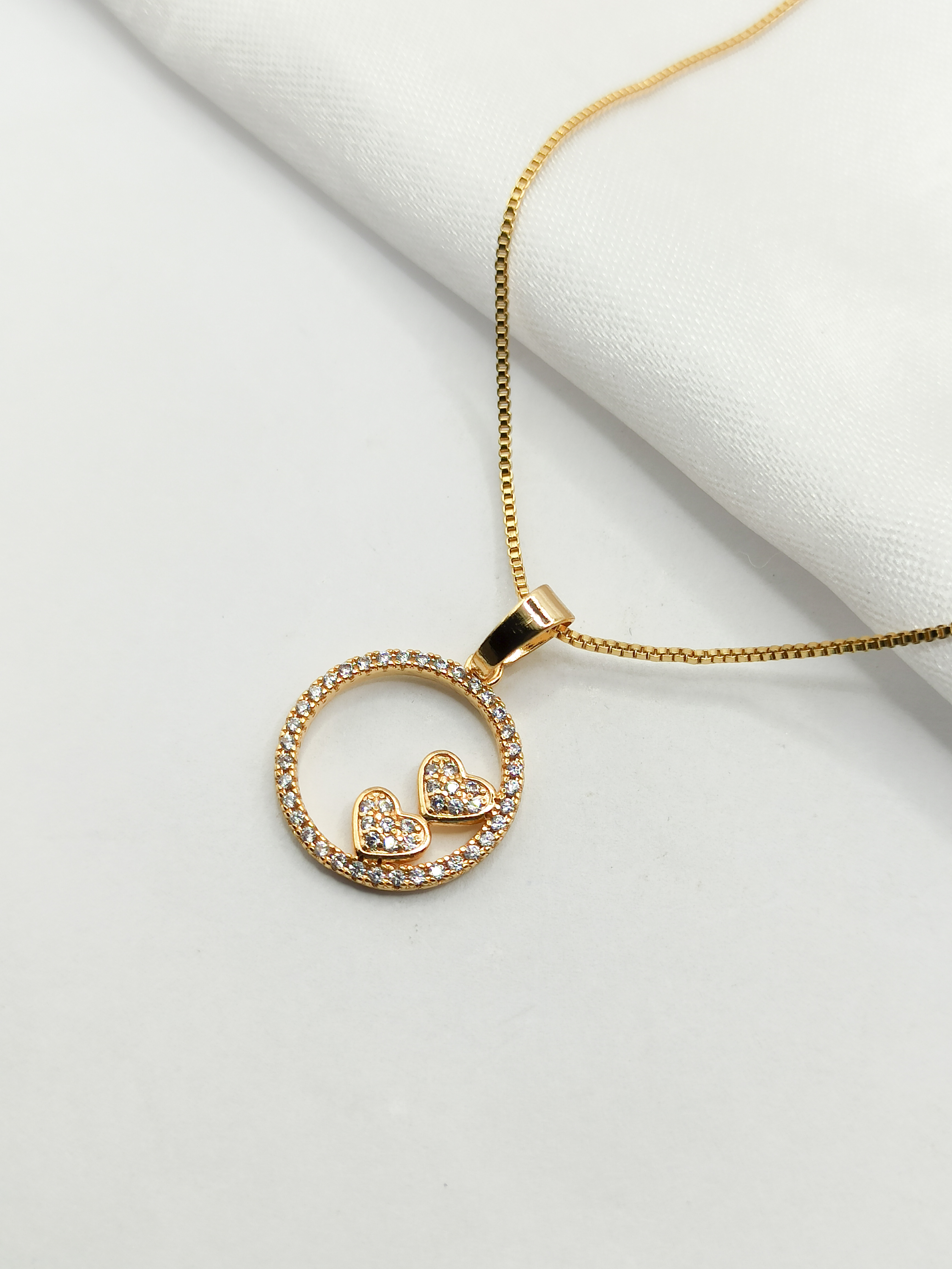 - COLAR PINGENTE CIRCULO CORAÇÕES SEMIOURO 45/50CM