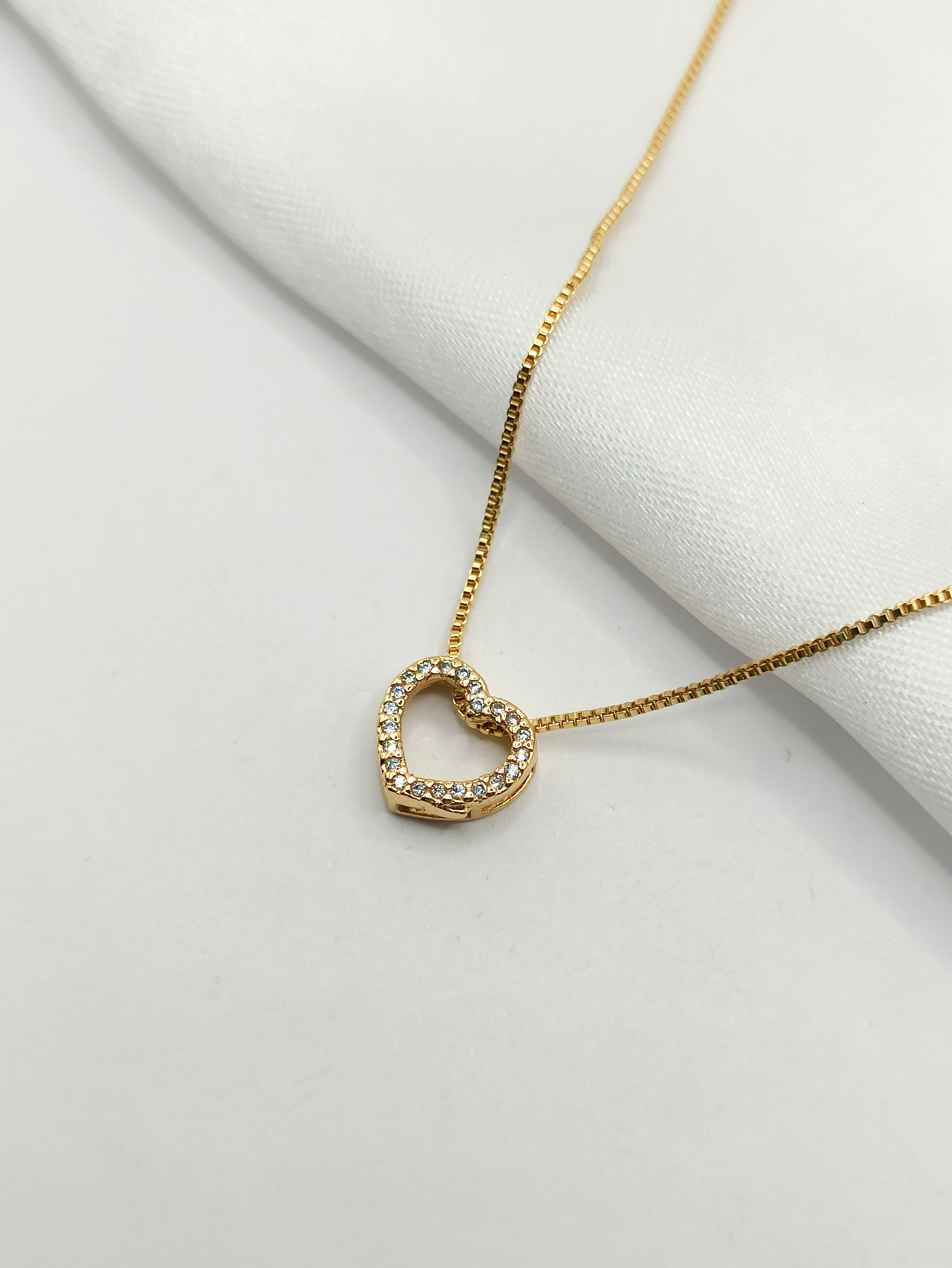 - COLAR PINGENTE CORAÇÃO CRAVEJADO SEMIOURO 45/50CM