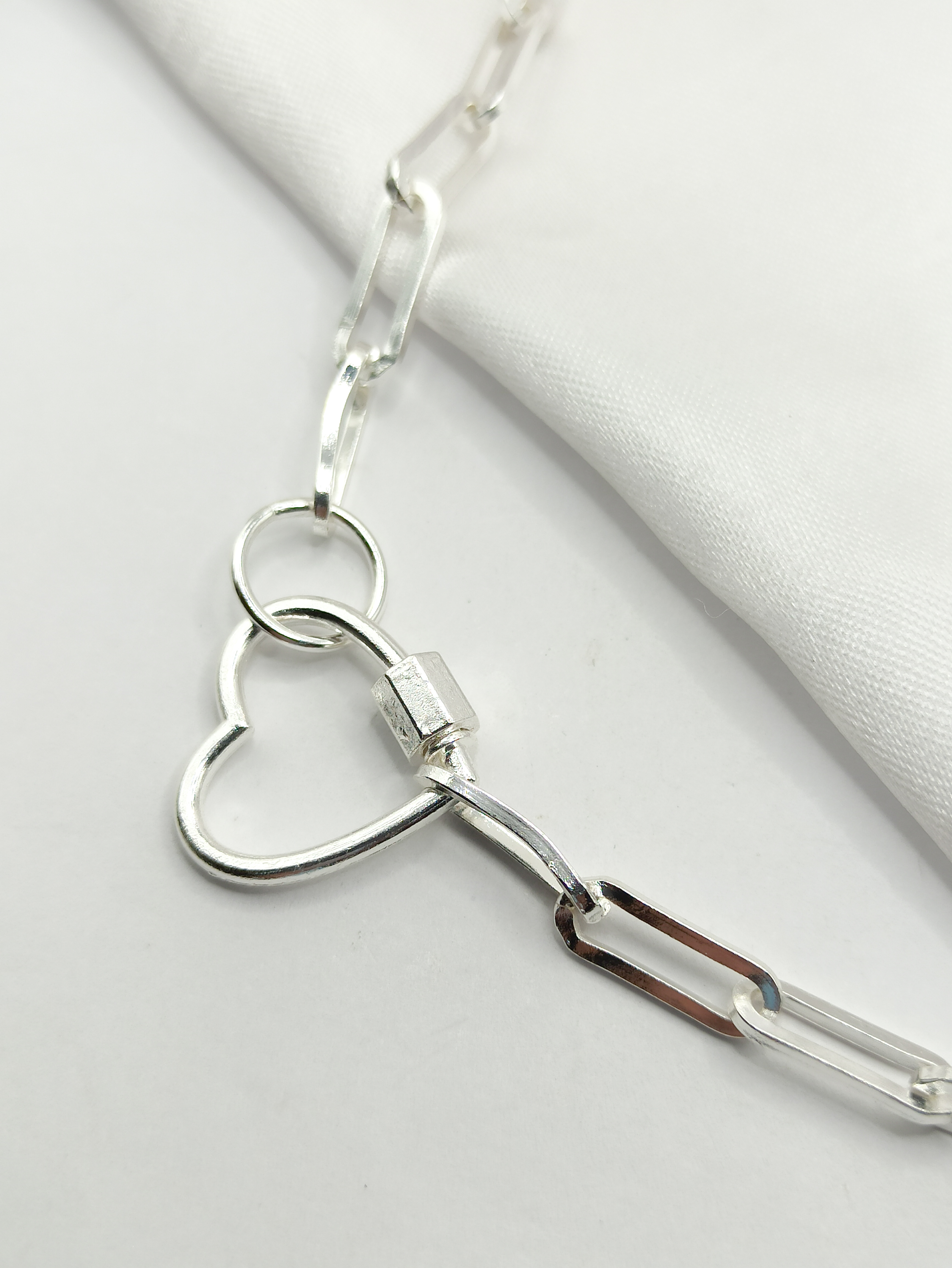 CHOKER ELOS FECHO CORAÇÃO SEMIPRATA 40/43CM