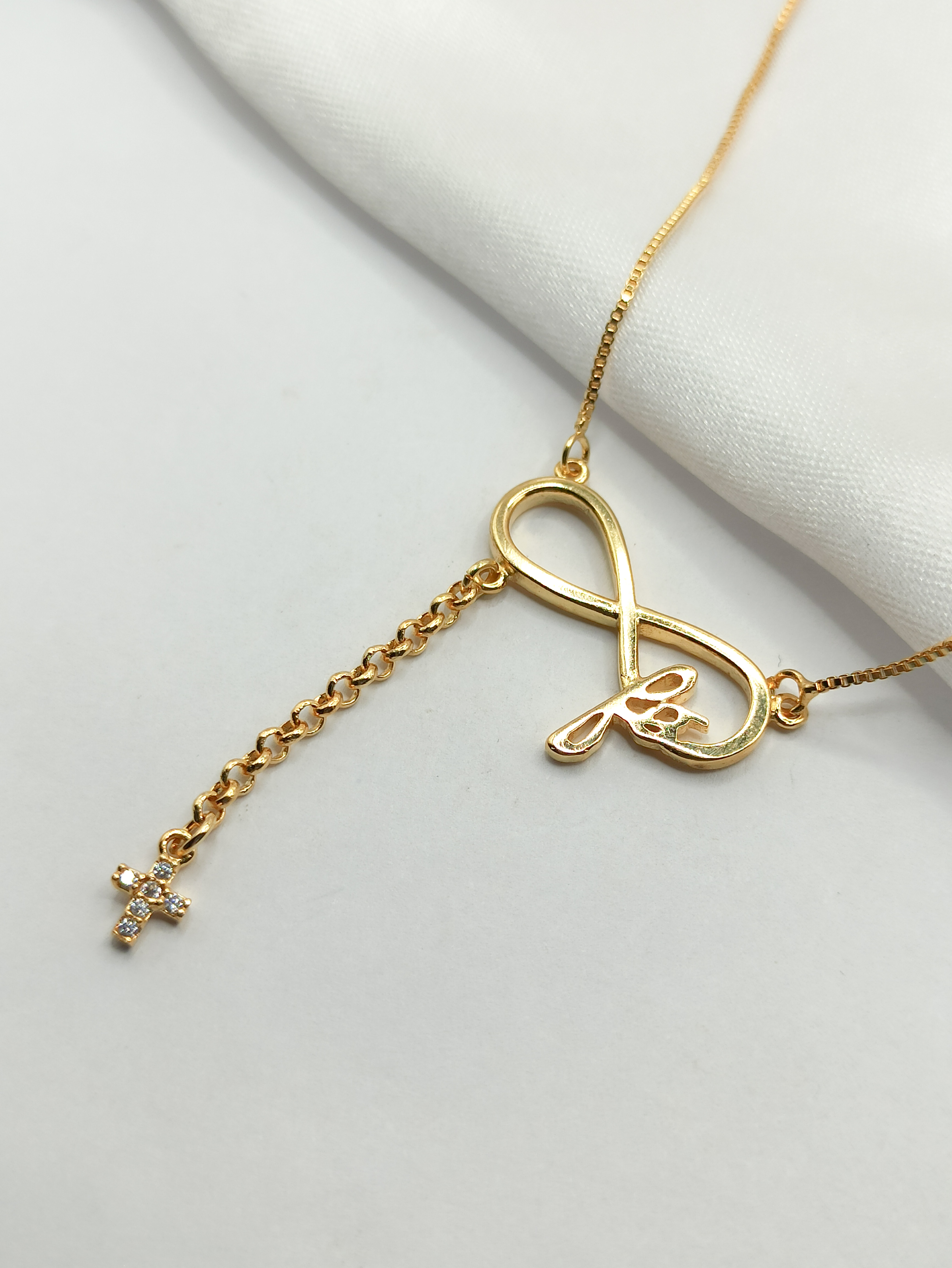 - COLAR INFINITO, FÉ E CRUZ ZIRCONIA 50CM BANHOOURO